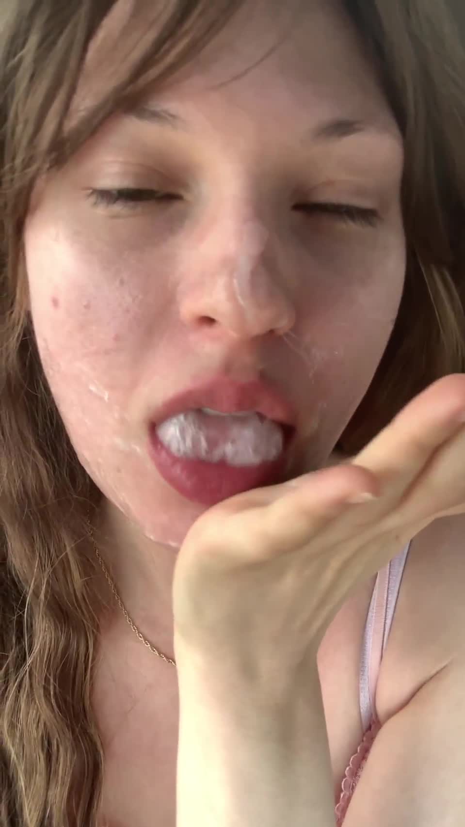 Добилась своего и обильно сделала макияж из спермы