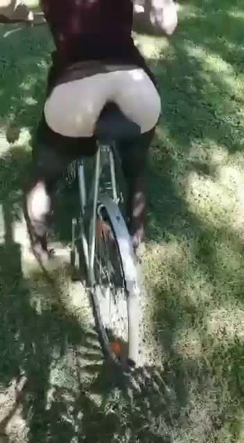 Девушка долбит свой анал седлом от велосипеда