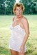 Пожилая дама с короткими рыжими волосами раздевается у забора из колючей проволоки