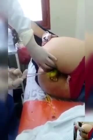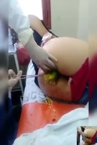 Врачи с трудом вытаскивают большой огурец, застрявший в заднице женщины.