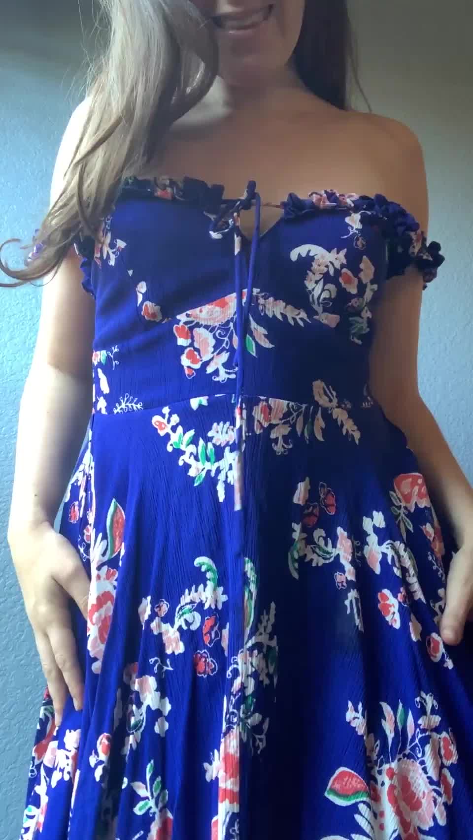Красивое платье на красивой девушке, упало и обнажило все юные формы красотки, красивую грудь, хороший животик и выбритую киску.