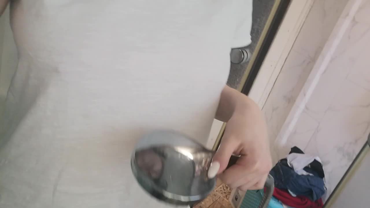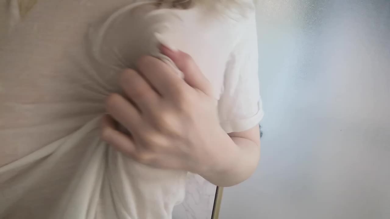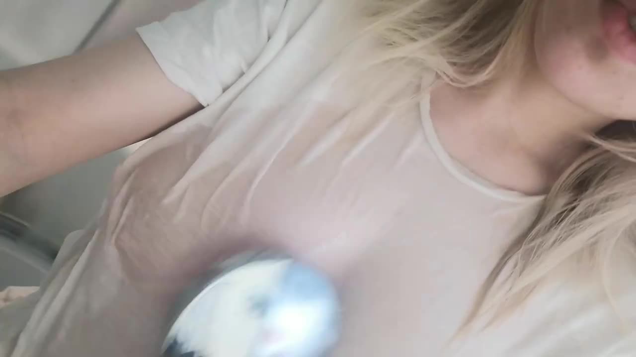 стройная красивая блондинка с большой грудью намочила футболку под душем