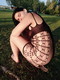 Женщина на выходных на даче решила уйти в отрыв, одела сексуальную сетку и отдыхала и загорала нагишом