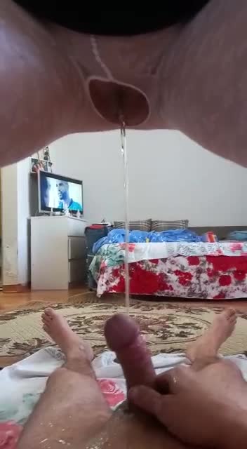 Госпожа выдаёт золотой дождь на член раба
