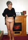 Седая, коротко стриженная бабушка хвастается своей огромной грудью дома