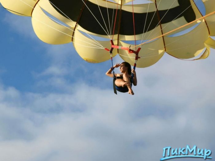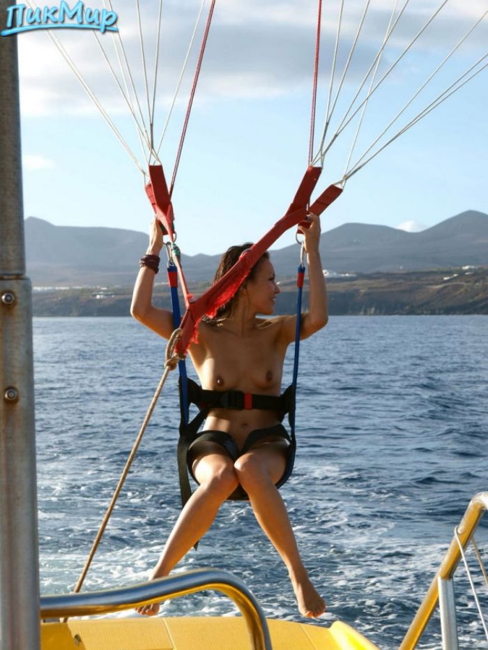 Обнаженная девушка на парашюте