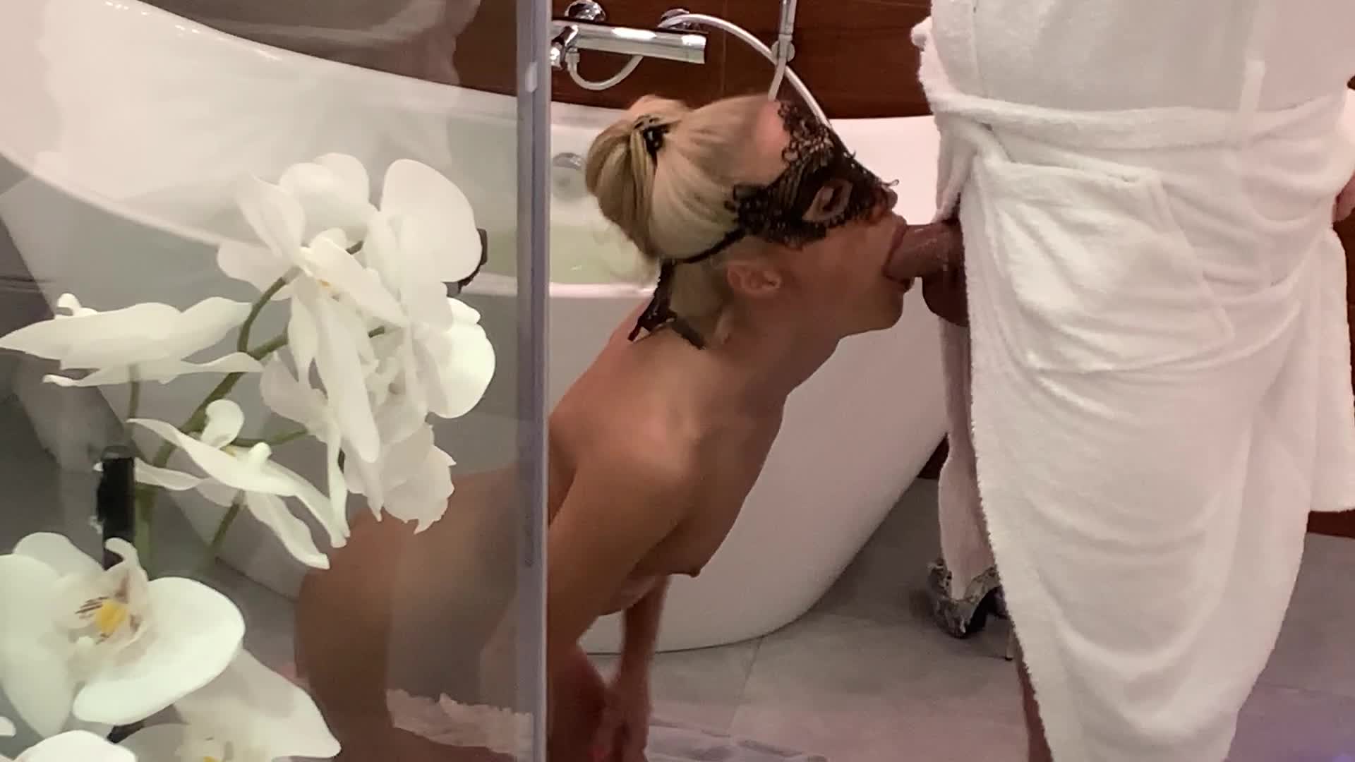 в ванной с пенкой она отсасывает хуй
