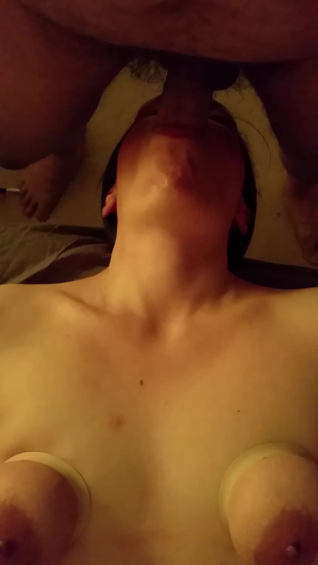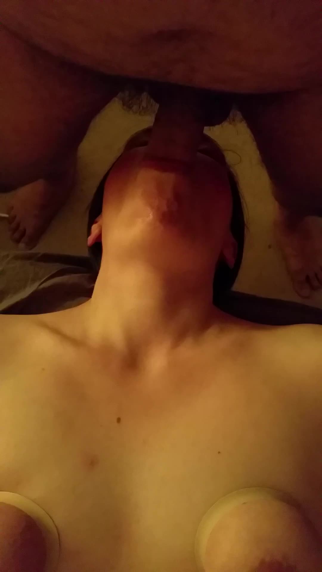 мужик полностью засунул свой хуй ей в рот