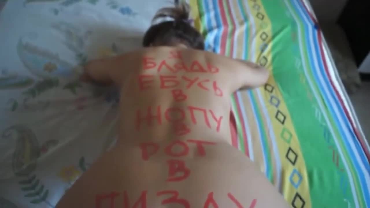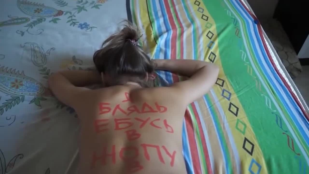 мало того что унизительно оттрахана, её ещё и по ягодицам бьют сильно - сплошные синяки!