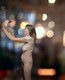 взрослая милашка голенькой позирует на фоне огоньков.