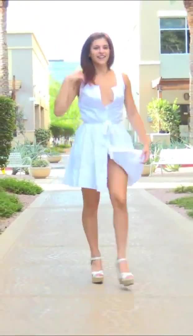 Девушка идёт по улице и показывает себя и что она умеет