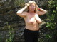 Зрелая женщина с полным телом и большой грудью позирует на улице
