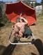 милашка загорает немножко прикрывшись зонтиком голышом демонстрируя своё аппетитное тело и попивая пивко из бутылочки.