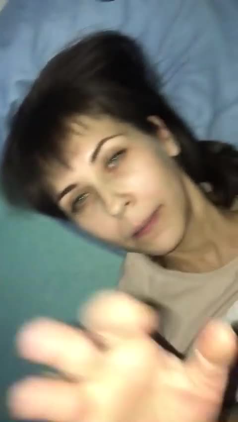 Парень взгромоздился сверху на свою девушку и даёт ей сосать член,а ей противно!