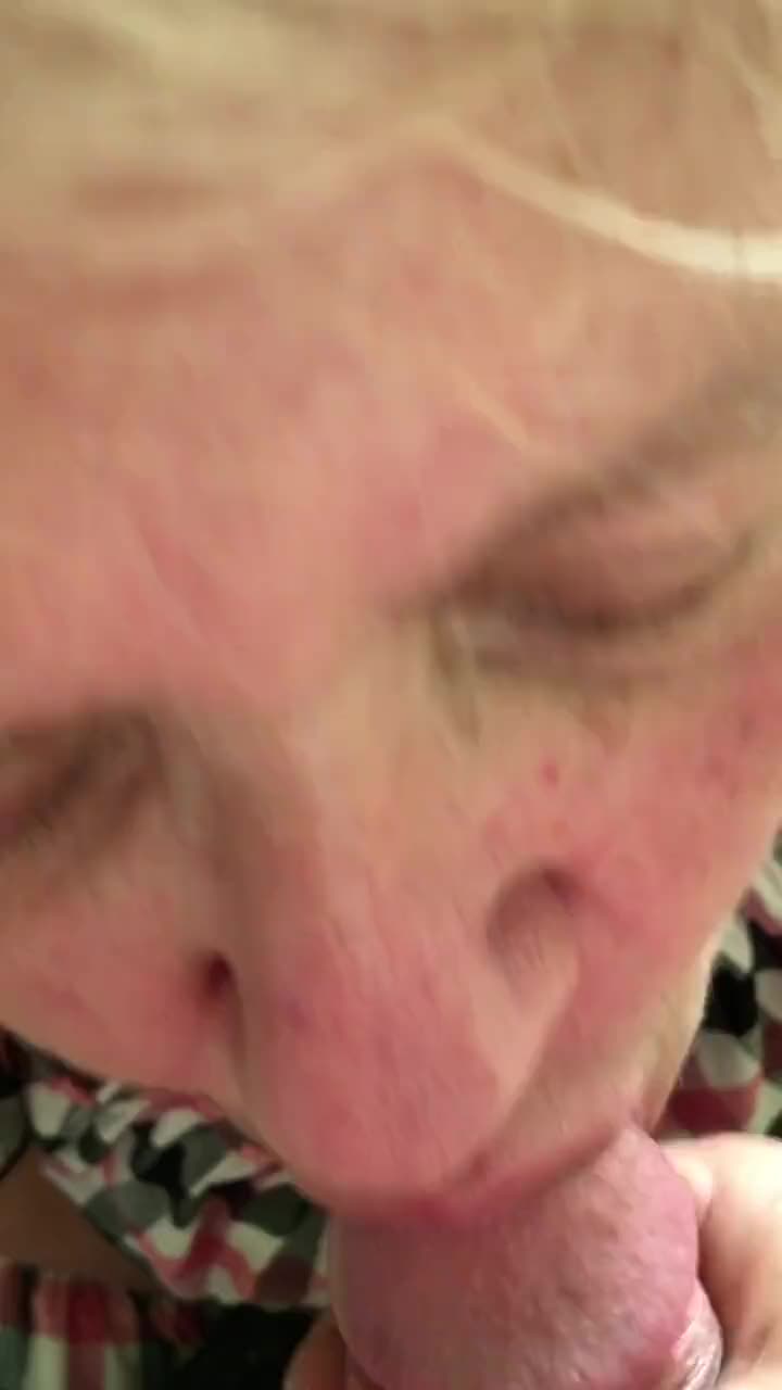 Старушка делает минет молодому парню и он кончает ей в ротик!