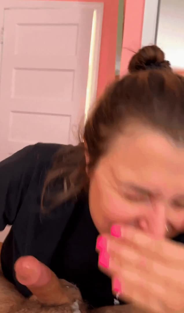 Набрала в рот спермы, а проглотить в этот раз не получилось.