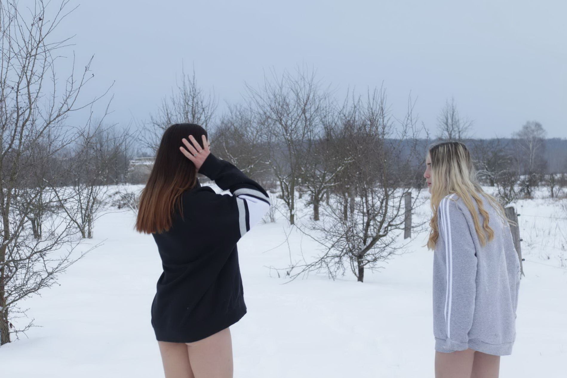 зимой на улице показали свои попки в стрингах
