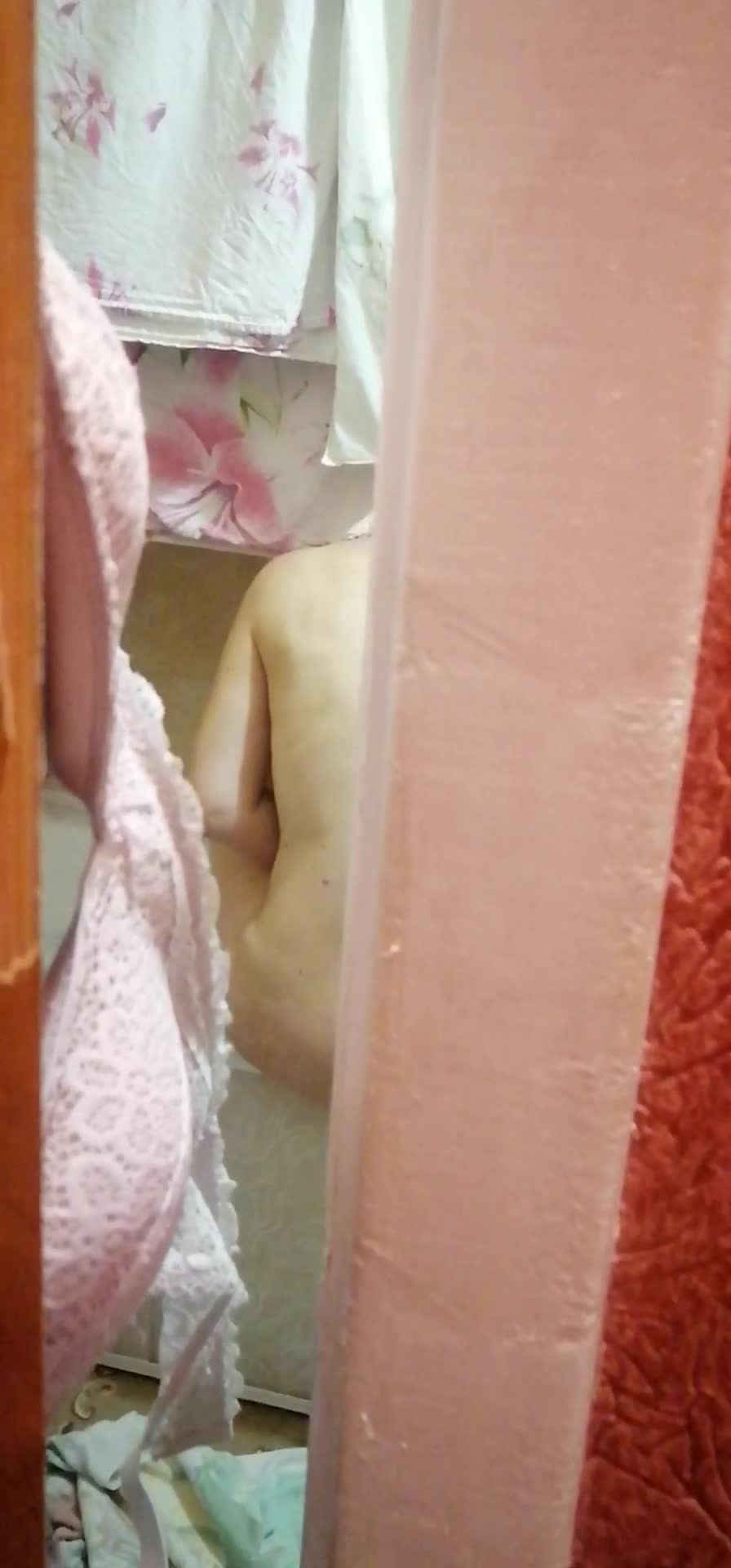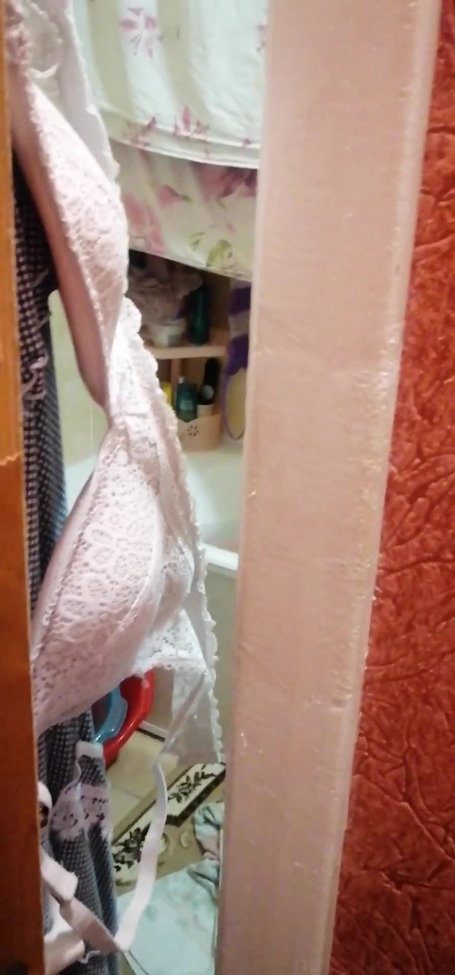 Тихо скрыто сын подкрался и заснял через приоткрытую дверь мамашу в ванной