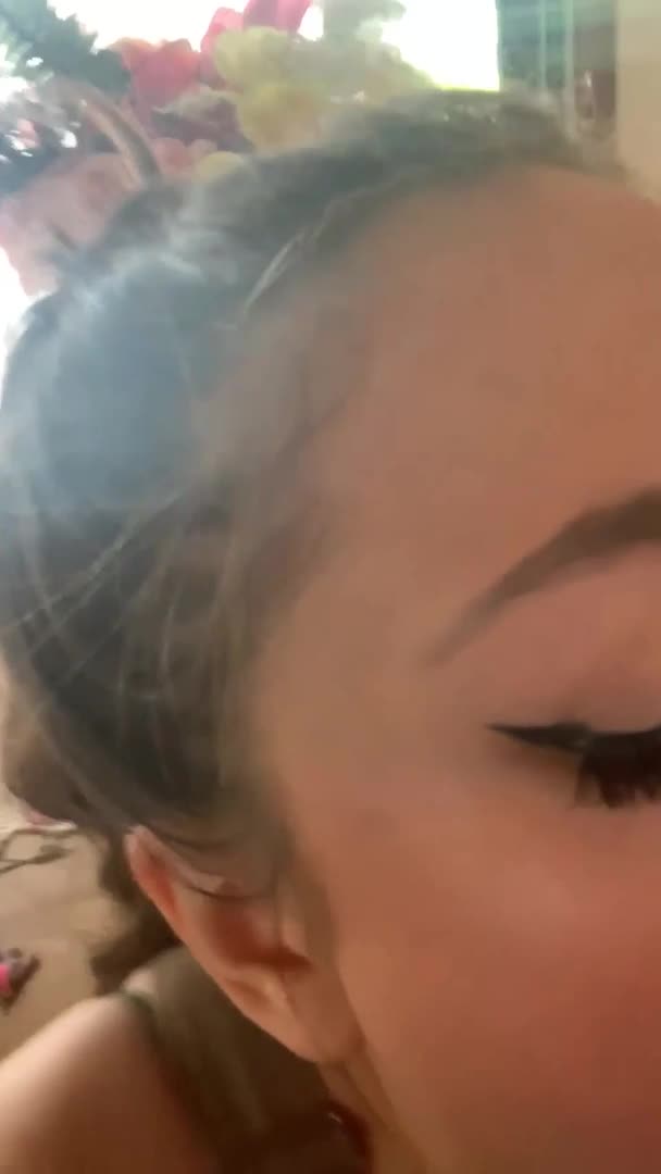 Судя по заднему фону она цветами торгует! Это наверное её начальник премию в рот дал!