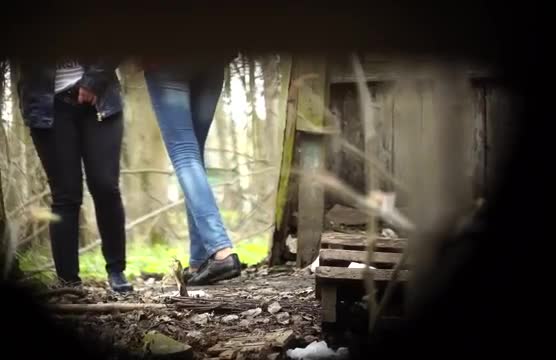 Дамочки решившие справить нужду в каких-то развалинах не ожидали что их там поджидает чья-то камера.