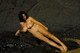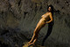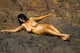 Зрелая брюнетка с черными как смоль волосами показывает свое стройное женское тело среди скал