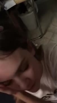 Держит за волосы и натягивает ртом на член стоящую на коленях сучку в одной футболке
