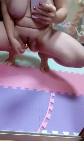 Снимает сама себя голенькую в детской комнате, показывая свои большие бидоны