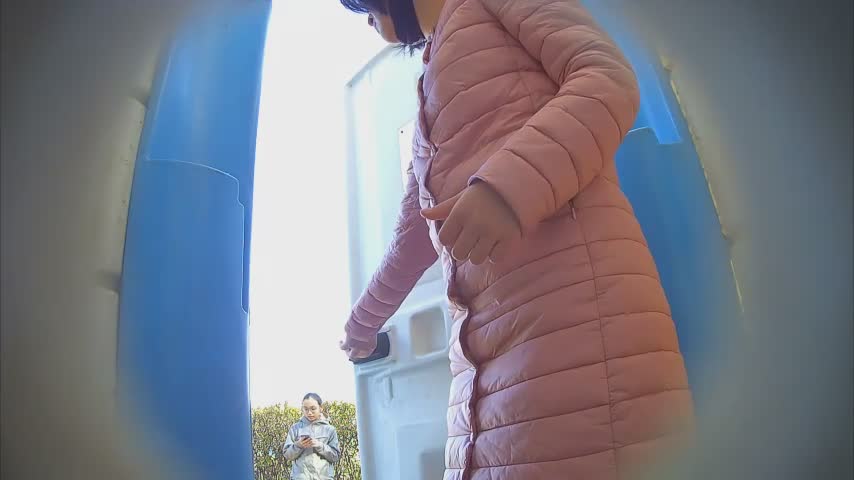 Азиаточка писает в биотуалете,где ее попку и волосатую письку снимает скрытая камера.