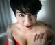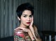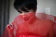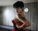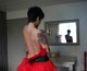 Красивая азиатка в красном платье, разделась и красиво попозипровала