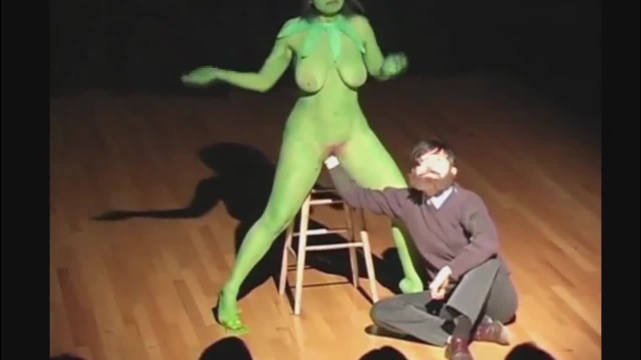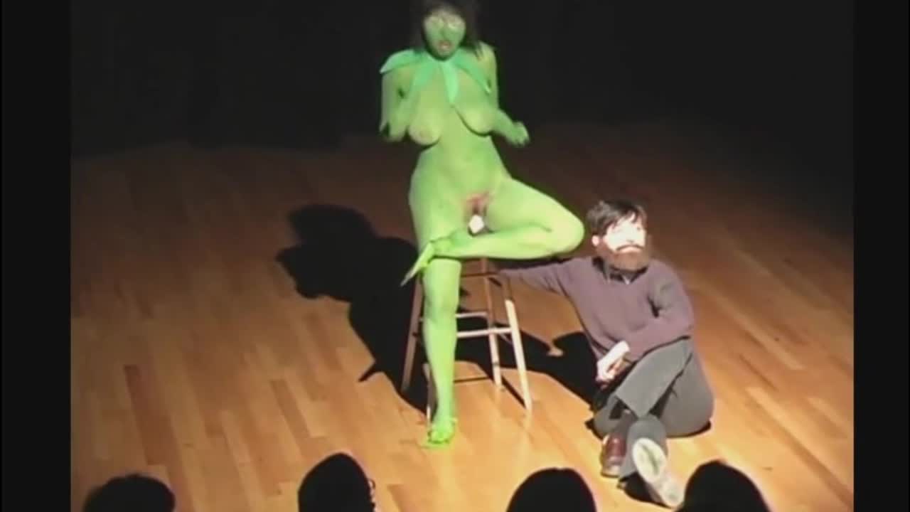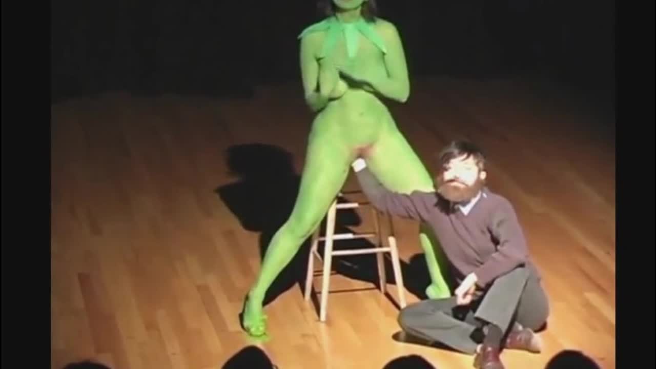 На сцене чисто голая девушка, выкрашенная в зеленый цвет. Другой актер засовывает руку ей в киску и произносит свою речь.Вот такая испанская театральная постановка.