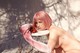 молодая влюбленная парочка устроила эротическую фотосессию у себя во дворе, видимо в наличии у них была только клубника и парики