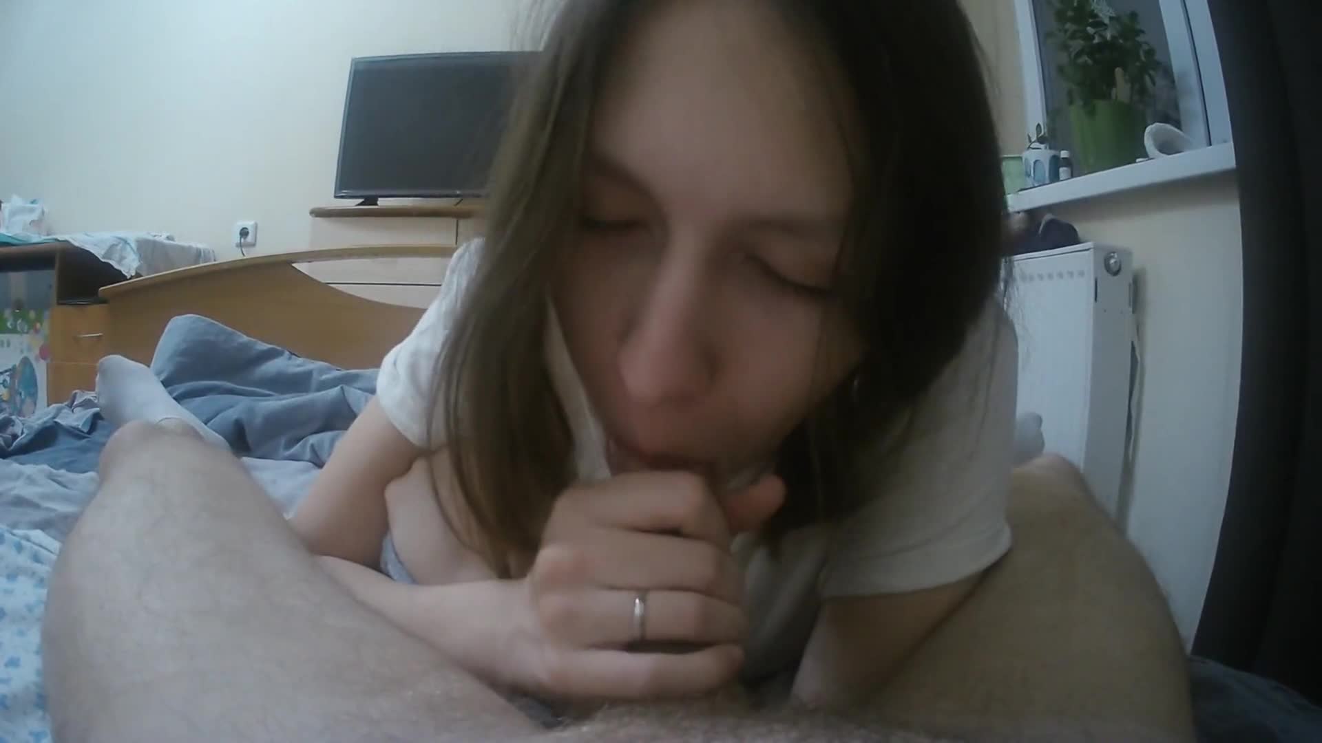 Её поднять подняли, а разбудить забыли. Но всё равно сосёт неплохо. Многие бабы и в бодром состоянии так сосут и по другому не умеют.