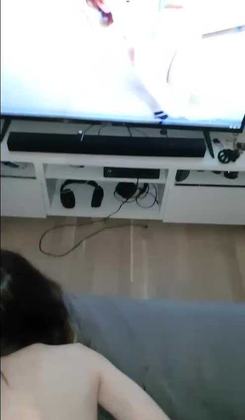 В такой позиции. Его член на фоне её бёдер, кажется громадным.