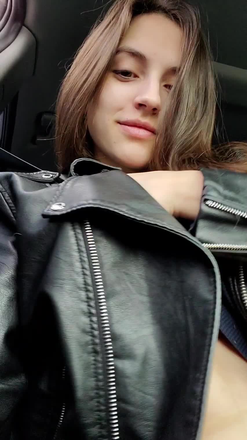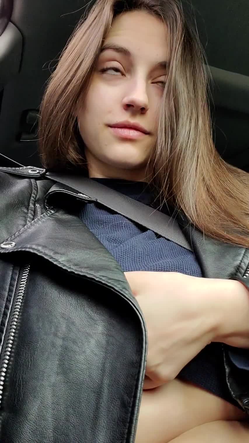 Девушка стало скучно в машине и она решила поснимать свою грудь на камеру телефона.