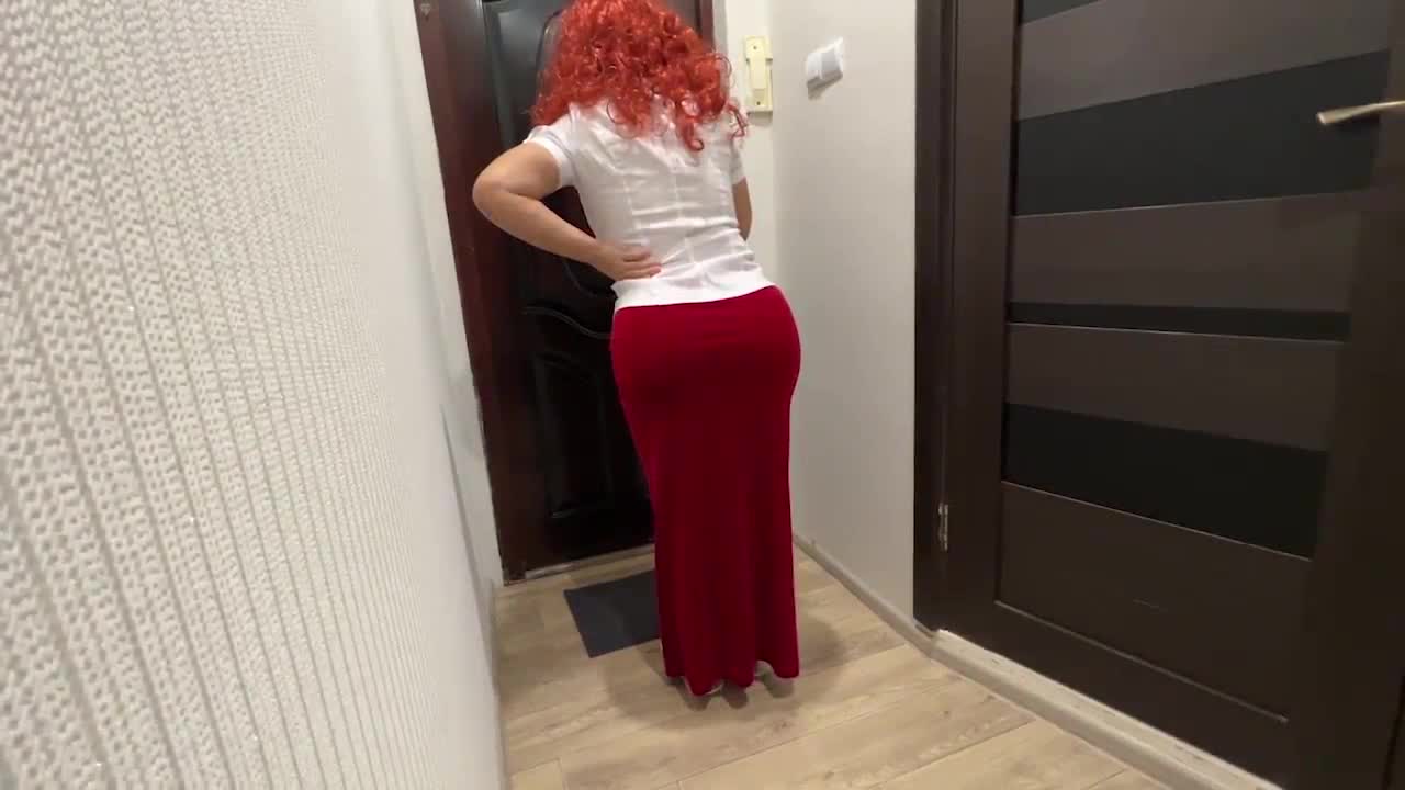 Рыжеволосая перед тем как дать в анал, прошла по квартире и посмотрела всё ли в порядке.
