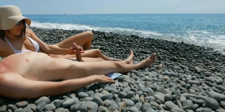Приятно полежать под лучами солнца и шум моря да ещё если рядом подруга подначивает твой член.