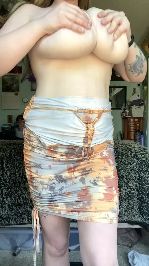 Натуральные висячие большие сиськи интересной домашней женщины.