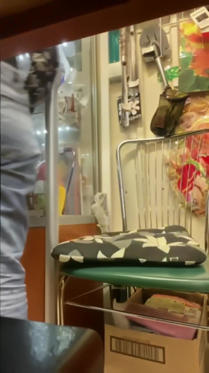 Девушке скучно работает продавщицей в ларьке и от скуки трогает свою киску, параллельно снимая это на камеру