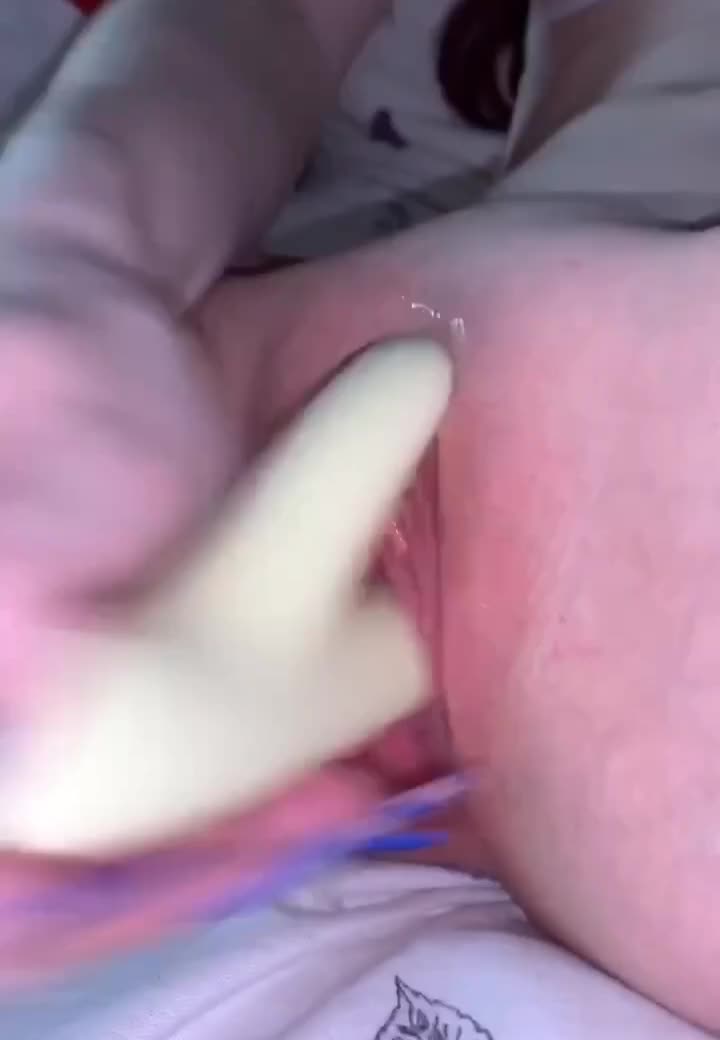 Девушка играет со своей игрушкой и тихонько постанывает что бы не разбудить соседей