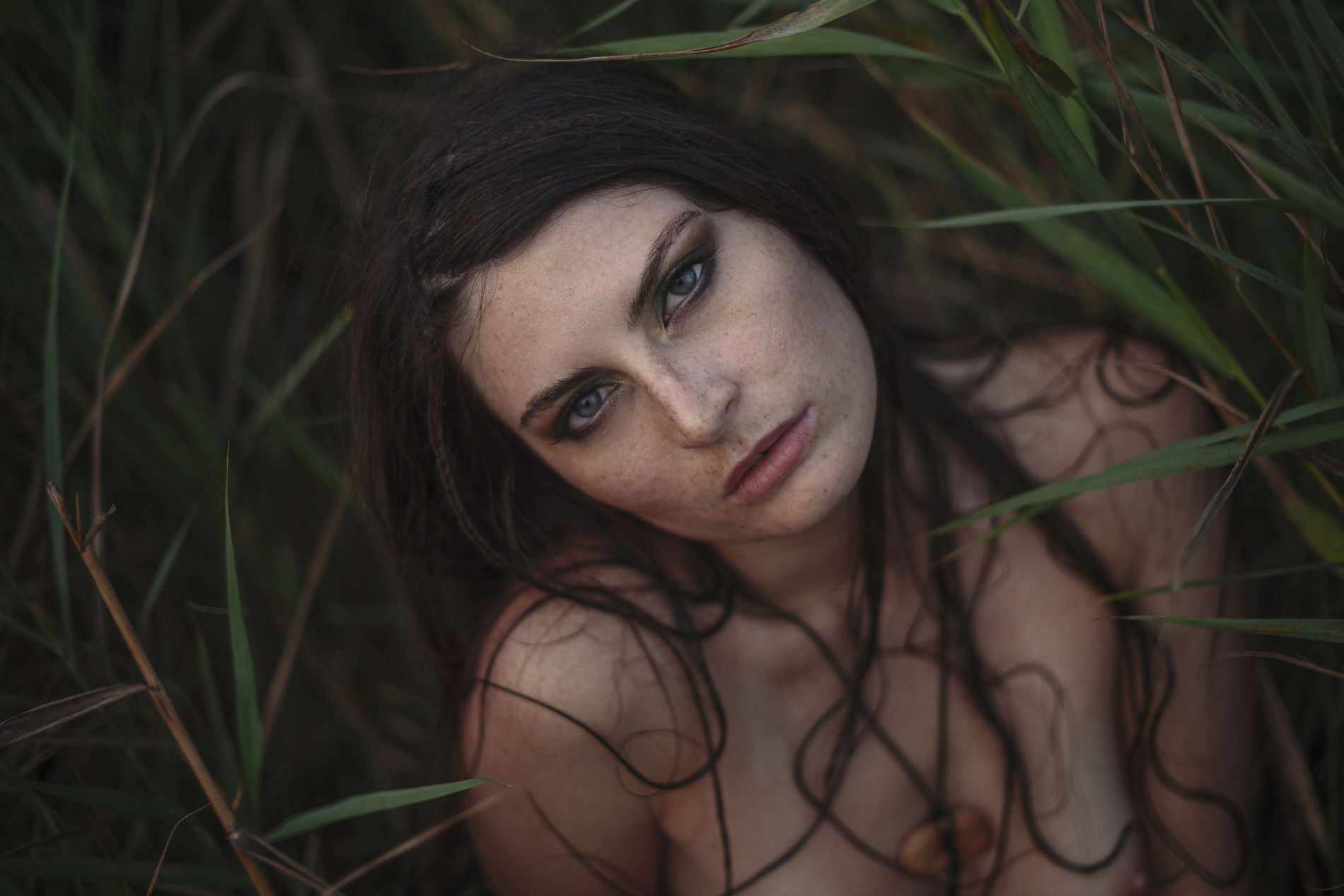 Милая модель, а по некоторым данным и фотограф, позирует на пленэре.