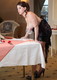 Сцеживает молоко в бокалы из грудей налившихся молоком после рождения ребёнка.