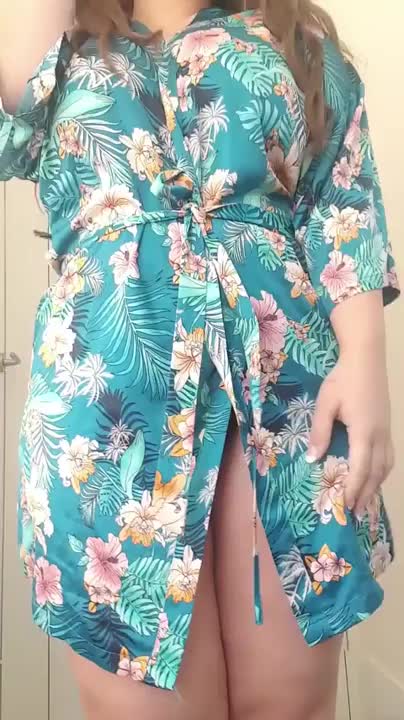 пухленькая молодая женщина распахнула халат, чтобы показать себя.