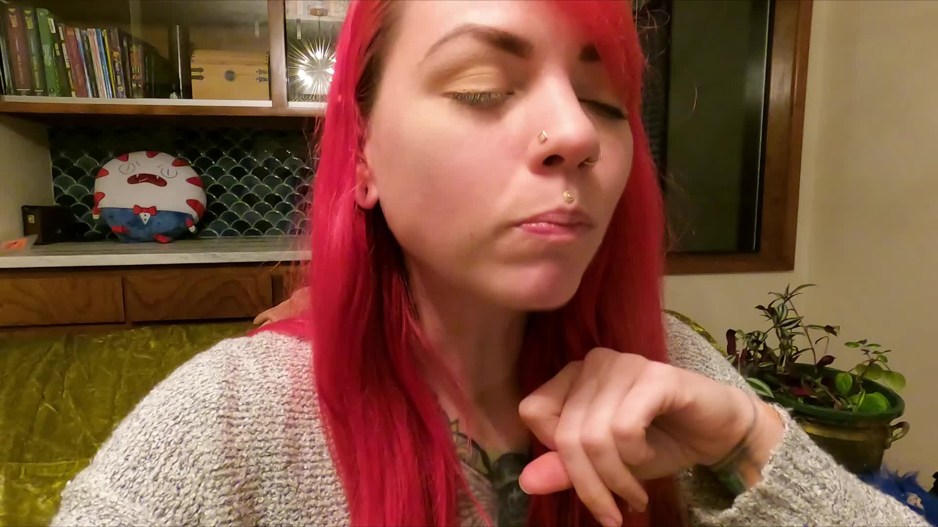 татуированая девушка ведет видео блог о еде и о походе в туалет