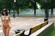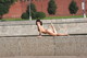 Стройная привлекательная брюнетка гуляет обнаженной по Москве
