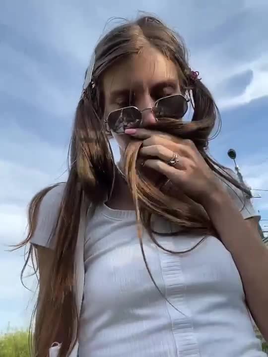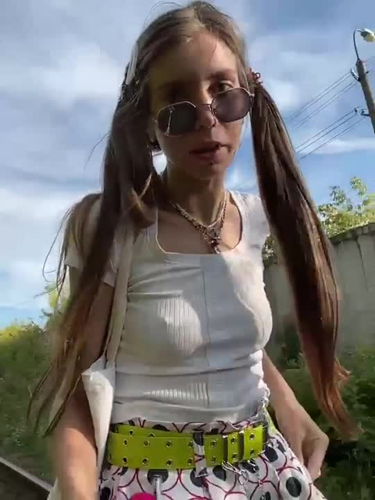 худенькая девушка без трусов гуляет по улице, мастурбируя и трахая свою киску в прямом эфире
