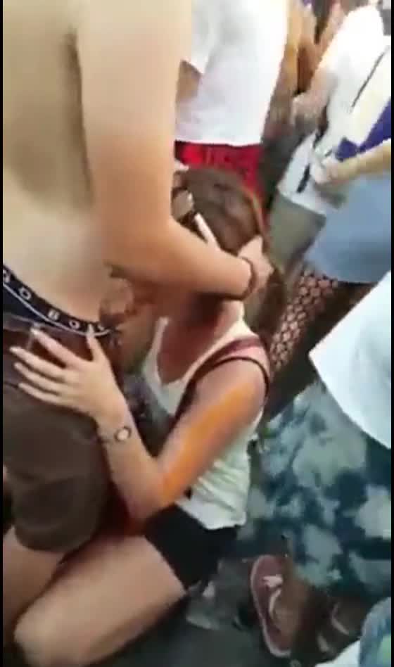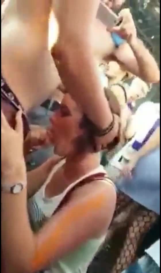 милая девушка делает минет парню в толпе во время концерта.