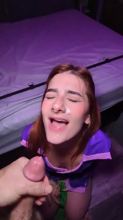 Рыженькая самочка сильно захотела спермы на лицо и сделала для этого минет своему другу.