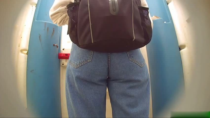 Девушка в джинсах зашла в туалет,заголила свой классный зад засветила свои тату на ляжках и поссала.