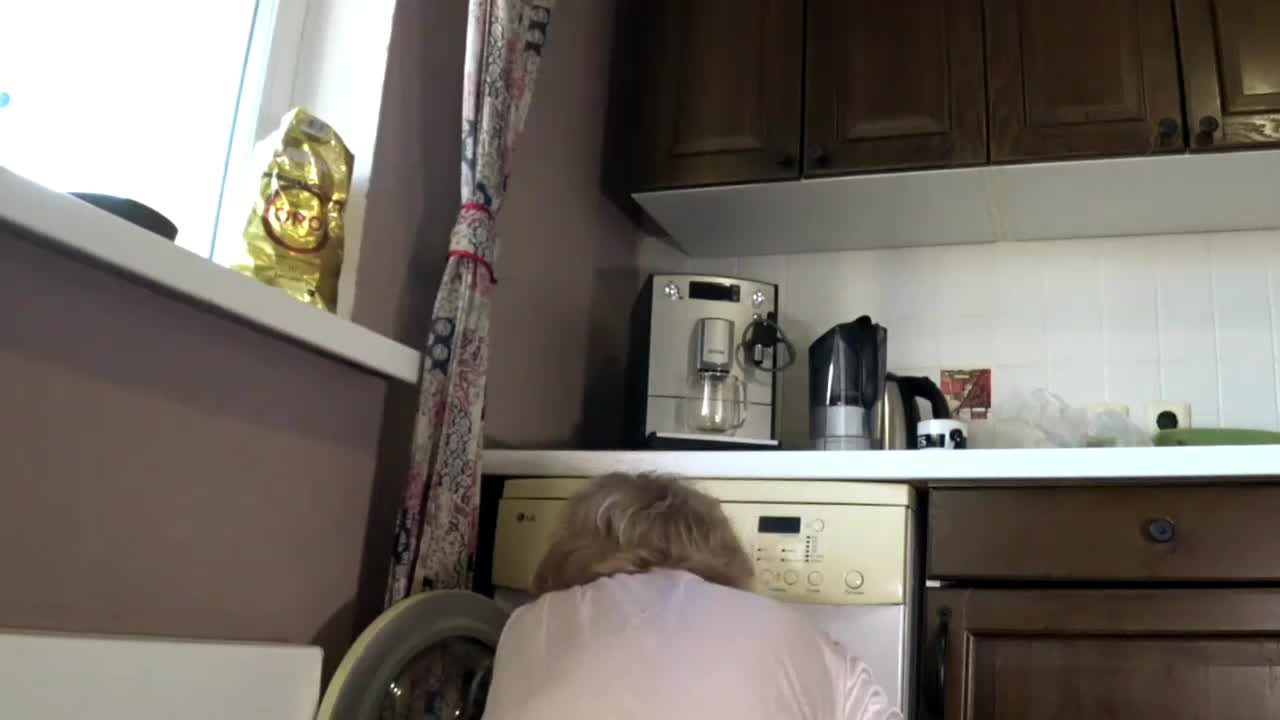 Загружала стирку, её киска была в метре от моего лица, я даже чувствовал манящий запах её сладкой дырочки...