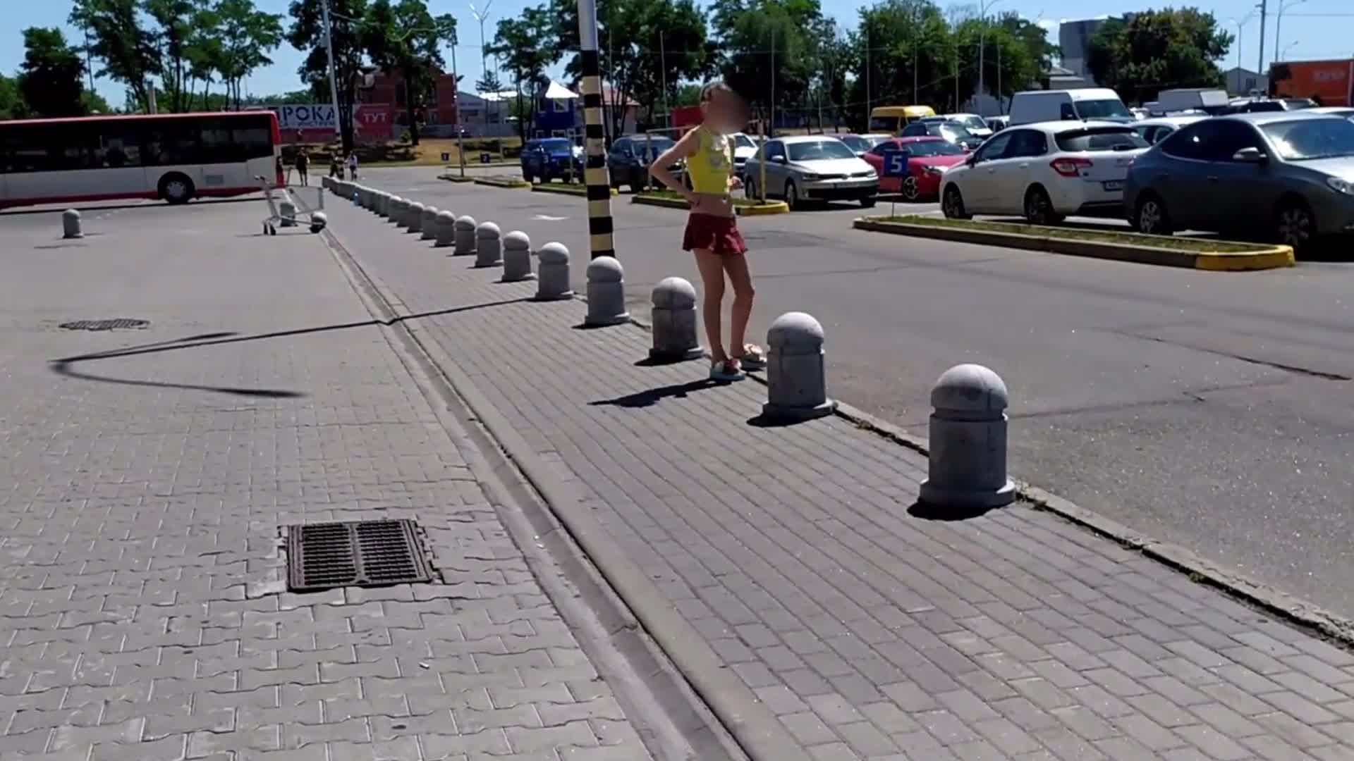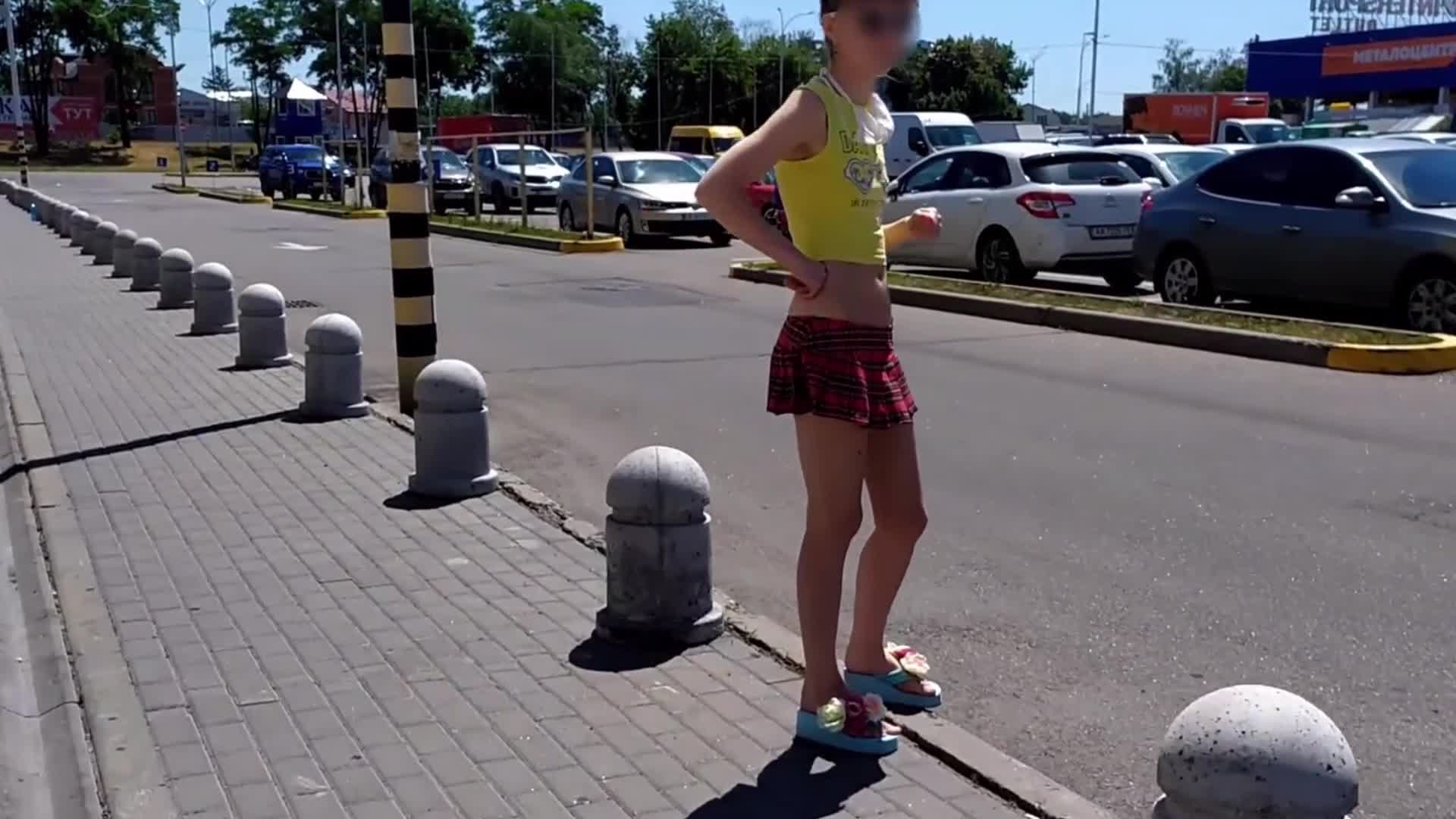 Лия прогуливается в мини-юбочке в общественном месте